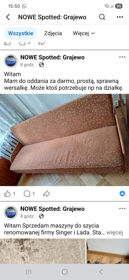 Grajewo ogłoszenia: Wersalka i rogówka w dobrym stanie do zabrania za darmo.